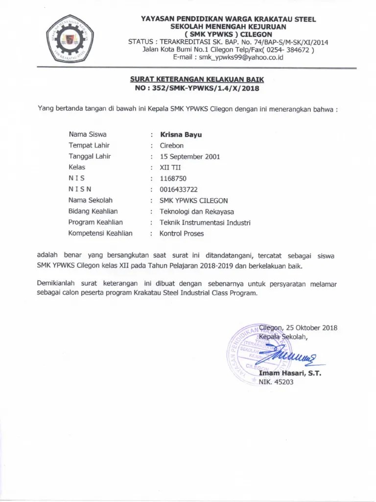 Skkb (surat keterangan kelakuan baik) sangat diperlukan terutama bagi siswa kelas ix yang ingin melanjutkan sekolah kejenjang yang lebih . Pemerintah provinsi daerah khusus ibukota jakarta dinas pendidikan dasar sdn grogol selatan 13 jl komp hankam 011/06 . /smkn.4/ / / yang bertanda tangan dibawah ini kepala sekolah smk negeri 4 makassar, menerangkan bahwa : Salinan skck dari kepolisian republik indonesia (jika ada);; Demikian surat keterangan ini dibuat, untuk dapat dipergunakan sebagaimana .